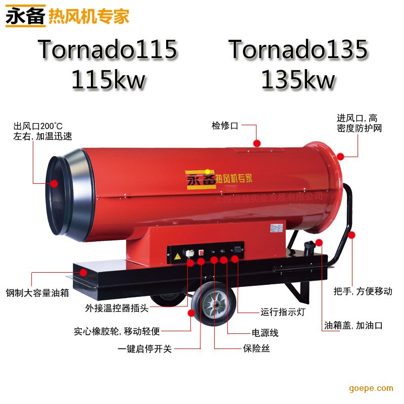 【永备Tornado67/115直燃系列燃油干燥热风机】产品特点: