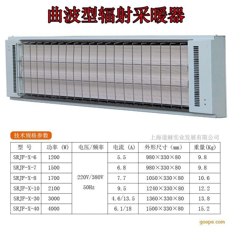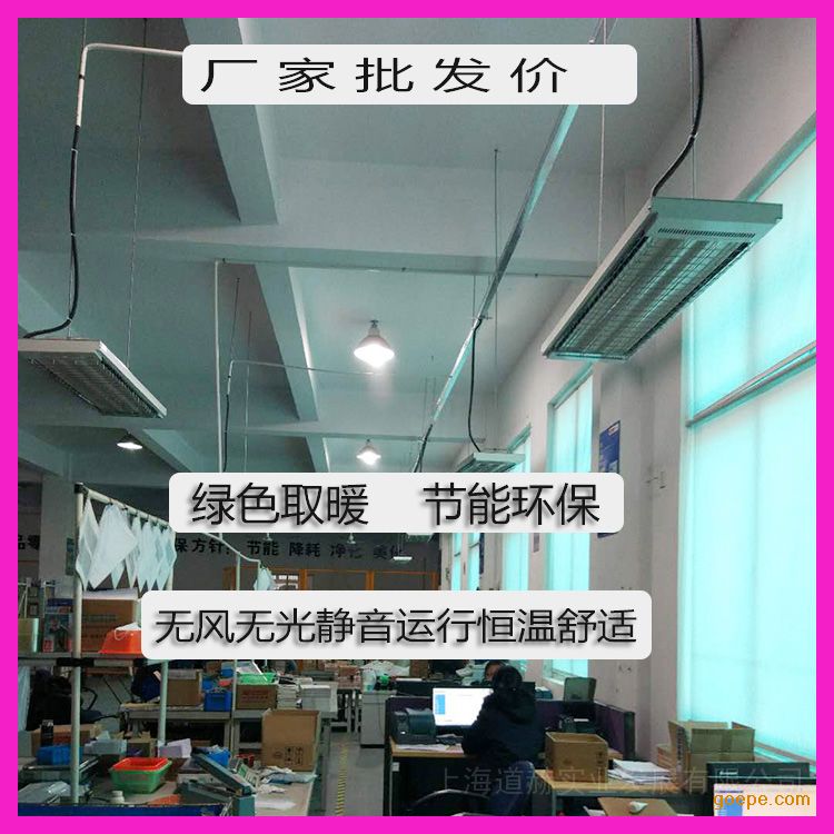 道赫高温辐射电热器厂房车间取暖静音电热幕SRJF-X-40电热幕采用的技术,以220v或380v交流电为能源,以加热整体空间环境。电热幕是由加热元件作为发热元件、采用铝镁合金表面经等,隔热层和外壳等几部分组成,没有风机。其工作原理为发热元件将热量以传导方式迅速传递到散热板,物体存在热效应,具有一定的穿透性。