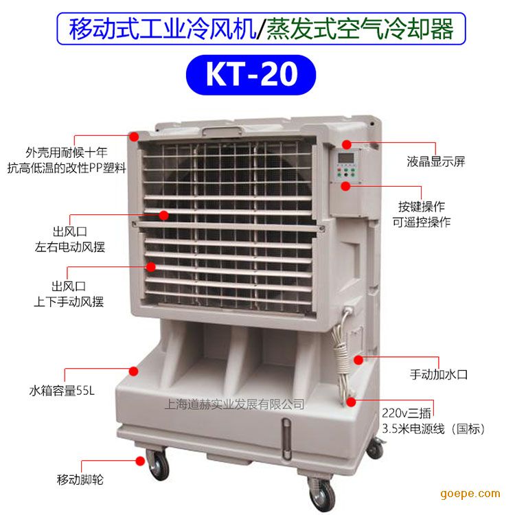 道赫工业型移动式水冷环保空调降温原理KT-20现在越来越多的企业开始使用水冷环保空调机,解决厂房降温通风的难题,因为水冷环保空调机不仅降温费用非常低,而且降温的效果也非常好,水冷环保空调机为100㎡厂房降温1个小时只需要1度电,而且降温的效果可以达到迅速降温4-10度,并且水冷环保空调机在降温的同时,还能够起到通风换气的效果。